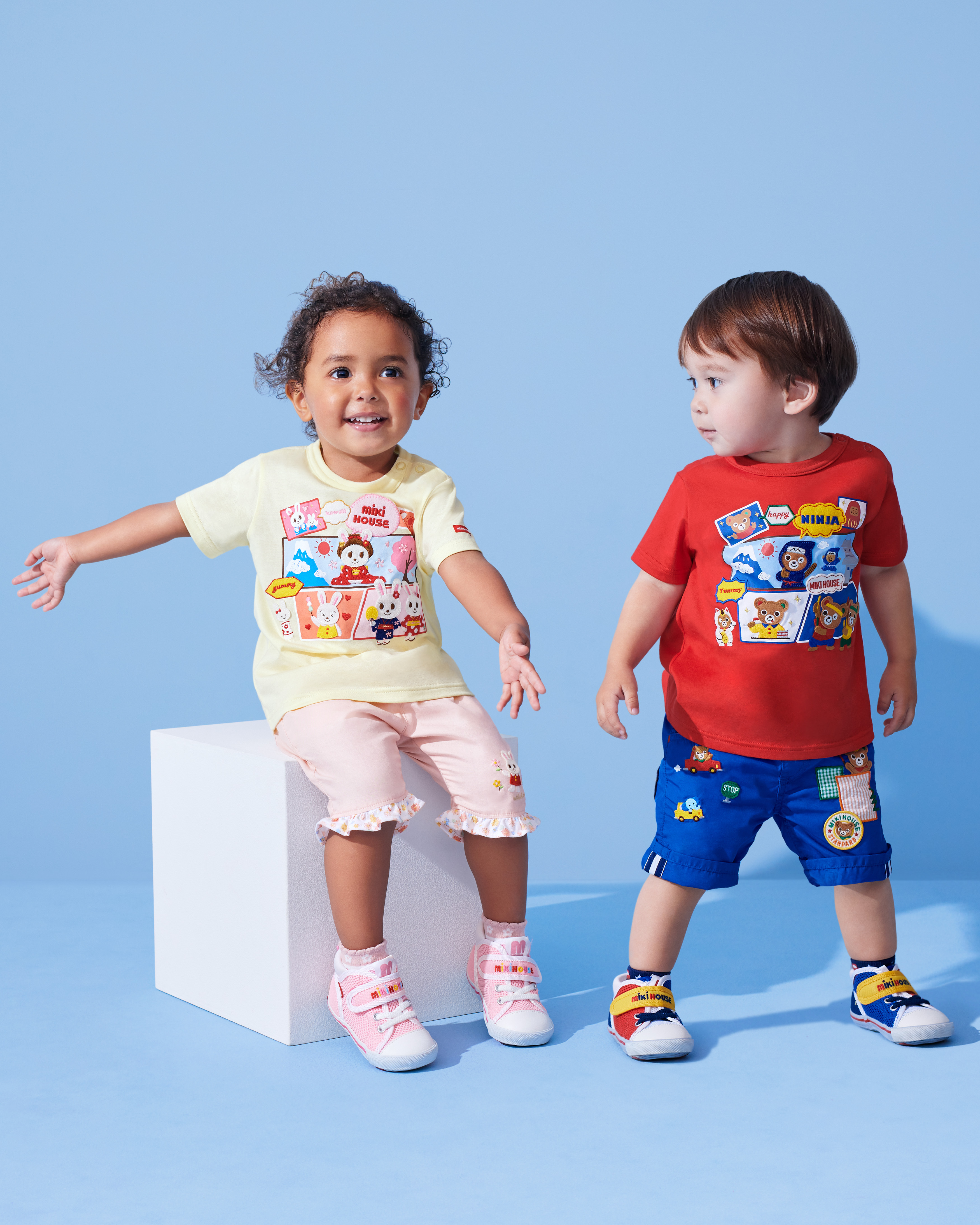 ・褲子的腰部配有彈性帶和調節帶,可以更好地貼合身形。另外,褲腳處裝飾有可愛的帶子,方便調整褲長。