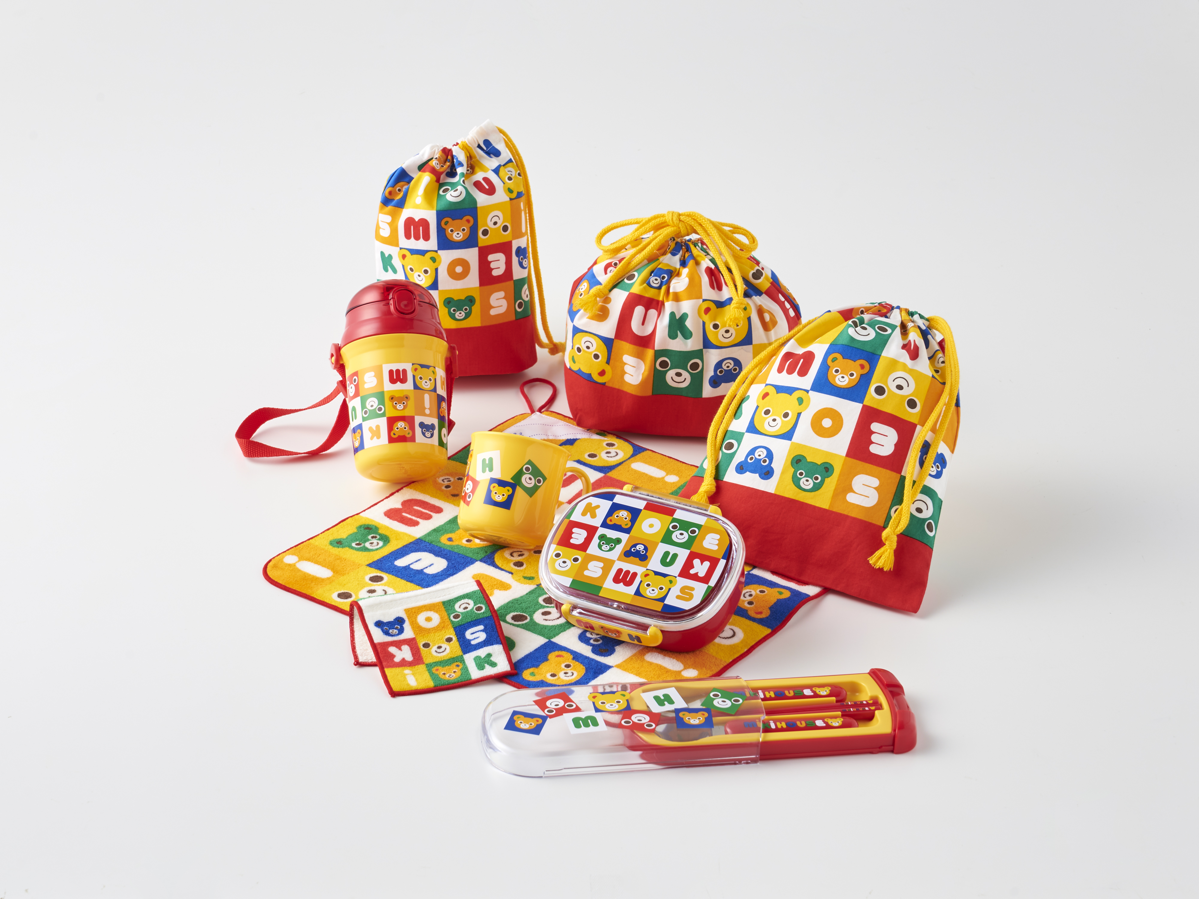 ・滿版普奇熊積木系列的午餐用品 - 抽繩袋。